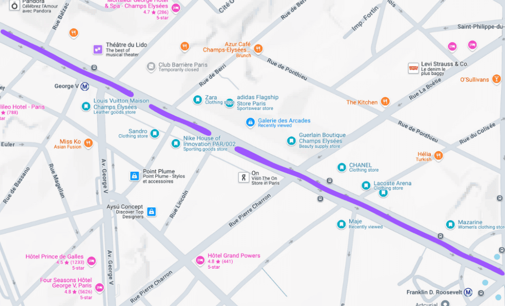 11:30 AM | Champs-Élysées – Browse Louis Vuitton’s flagship, global brands, and trendy finds.